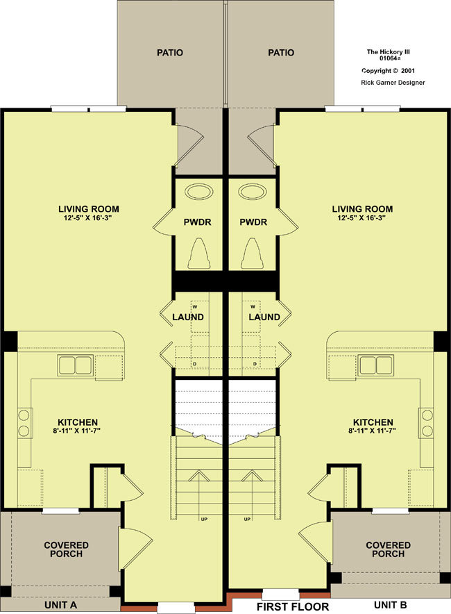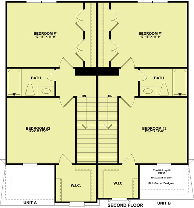 The Hickory III is a modern, two-story townhouse plan that delivers smart design and everyday comfort in a compact, efficient footprint. Each unit features 2 well-appointed bedrooms and 1.5 baths, offering the perfect balance of privacy and shared space for families, roommates, or investment properties.