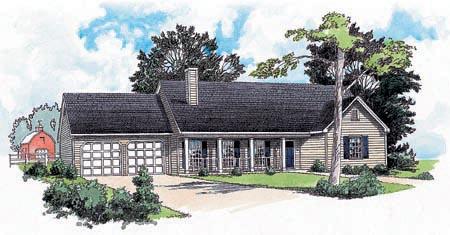 This stylish country home has a charming appeal with its covered front porch and handrail. This plan features,vaulted ceiling in den with built-in cabinets and fireplace, raised ceiling in master,open kitchen leading to dining area,walk-in closets in all bedrooms and separate entry foyer.