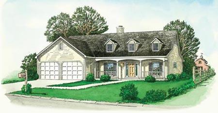 This traditional country home features spacious living area with fireplace and built-in cabinets, open kitchen with ample cabinet space, garage storage area and covered front/rear porches.