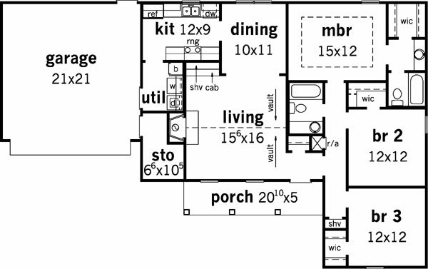 Spacious 3 bedroom, 2 bath cost efficient home design featuring vaulted ceiling in living area, built-in cabinets and shelves, large utility, walk-in closets in all bedrooms and ample storage space.