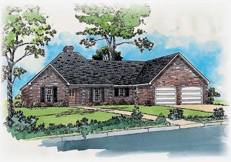 This elegant brick home accented with quoins and shutters has many features found in a much larger home. The bedrooms are designed in a split fashion& a perfect arrangement for children. This plan features a covered front entrance, formal entry foyer, formal dining area, vaulted ceiling in den, kitchen with eating area and breakfast bar, whirlpool tub and separate shower in master bedroom.