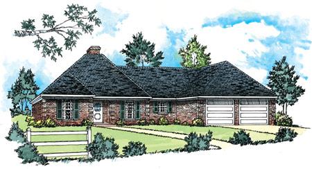 This Traditional design is accented by its elegant brick exterior and use of quoins. This plan features 3 bedrooms and 2 baths, separate entry foyer, fireplace flanked by built-in cabinets and shelves, spacious kitchen with breakfast bar and eating area, formal dining room, master bath has oversized tub and double vanities with large walk-in closet.