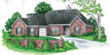Separate entry foyer, formal dining area, large den, large eat-in kitchen, raised ceiling in master and den, split bedroom plan, rich traditional exterior.