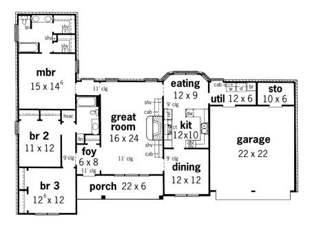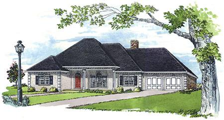 The exterior stucco detailing on this one story home gives this plan an elegant European look with a touch of classical French manor appeal. This plan features, 3 bedrooms and 2 baths, spacious master suite with double vanity and glass blocks in the bath. The great room features 11 ceiling with fireplace flanked by cabinets and shelves. The spacious kitchen features a large breakfast area with convenient access to the dining room and utility room. This plan is completed by a full size two car garage and storage area.