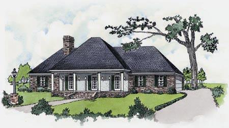 This sophisticated Louisiana styled home has the look of a much larger home. This plan features, 3 bedrooms and 2 baths, large master suite, raised ceiling in great room, large open kitchen with island and breakfast area, covered front and rear porch.