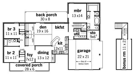 This traditional country styled home is perfect for the growing family. This plan features, 3 bedrooms and 2 baths, vaulted ceiling in den with fireplace flanked by built-in cabinets and shelves, whirlpool tub and separate shower with double vanity in the master bedroom, walk-in closets in all bedrooms, large storage room and bonus room over the garage.
