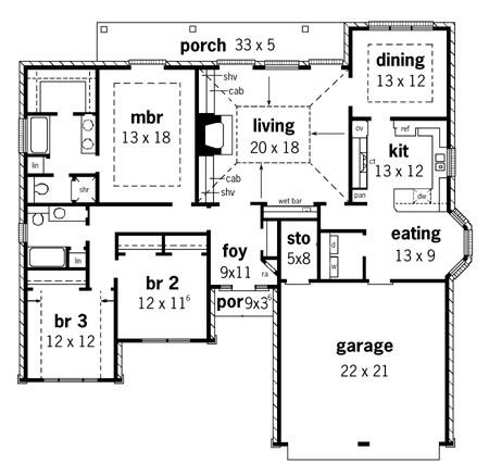 This elegant European design is accented by rich details of the quoins and dentil mould. The Palladian styled windows and entrance enhance this design. This plan features, 3 bedrooms and 2 baths, vaulted ceiling in living room and bedroom 3, raised ceiling in master bedroom and dining area, separate entry foyer and covered front and rear porches.