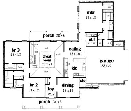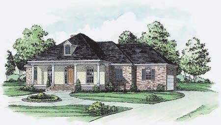 This classic Louisiana styled home with its blend of stucco and brick gives the look and feel of a much larger home. This plan features, 3 bedrooms and 2 baths in a split plan layout. The great room features a vaulted ceiling, built-in cabinets and fireplace. The master suite is located to the right and rear of the plan and features private bath with separate shower and walk-in closets. The spacious kitchen offers a large breakfast area with eating bar. This plan is completed with a full size two-car garage, trash ledge, and built-in cabinets and shelves.