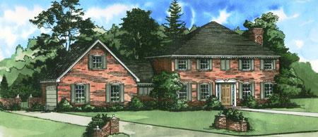 This plan features 4 bedrooms and 2 1/2 baths, formal dining and living room, spacious den with built-in cabinets and shelves, separate entry foyer and a bonus room above the garage.