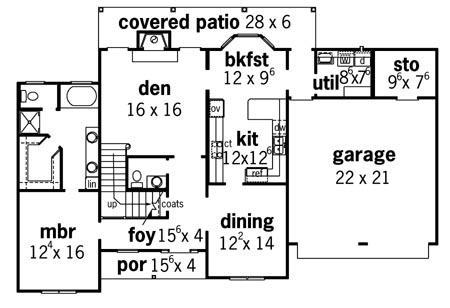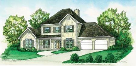The traditional country farmhouse styling of this home is most appealing with its covered front and rear porches. This plan features, 4 bedrooms and 3 ? baths, master suite with separate shower and whirlpool tub, walk-in closets in all bedrooms, breakfast bar in kitchen, two-story foyer, and bay window in kitchen.