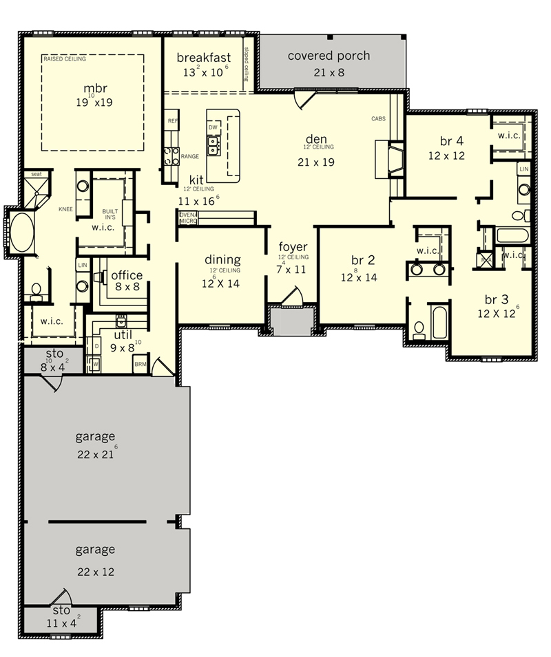 12′ Ceiling in Den, Kitchen, Dining, & Foyer