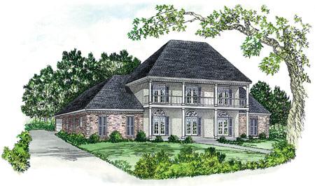 This traditional southern styled home is accented by its second story covered balcony and combination of stucco and brick exterior. This plan features, 4 bedrooms and 3 baths, two bedrooms are located on the main floor and two bedrooms on the upper floor, children s den upstairs, large kitchen, breakfast area and walk-in pantry.