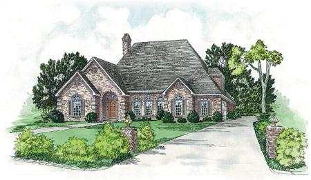 The elegant brick exterior detailing on this design gives this plan a sophisticated Georgian look. This plan features, 4 bedrooms and 3 ? baths, master and guest bedrooms downstairs, formal living and dining area, large gourmet kitchen with Center Island, separate entry foyer and covered front and rear porches.