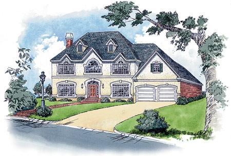 Its arched top windows and keystones accent the sophisticated stucco exterior of this design. This plan features, 4 bedrooms and 4 ? baths, elegant master suite with raised ceiling, two story grand foyer, formal living and dining rooms, gourmet kitchen with large breakfast area and walk-in closets in all bedrooms. This plan also offers a bonus room over the garage.