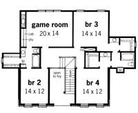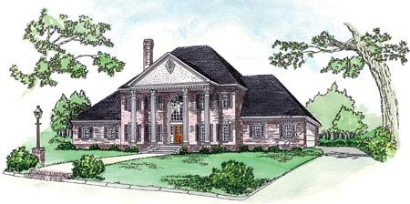 Its columns, shutters and brick exterior accent this beautiful plantation styled home. This plan features, 4 bedrooms and 3 ? baths, two story grand foyer, raised ceiling in master suite, large den with wet bar and fireplace flanked by cabinets and shelves, formal living and dining area, upstairs game room and covered front and rear porches.