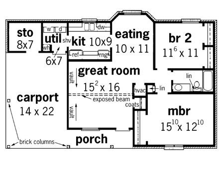 2 bedrooms and 1 bath,vaulted ceiling in great room, covered front porch, bay window in eating area, carport and ample storage space.